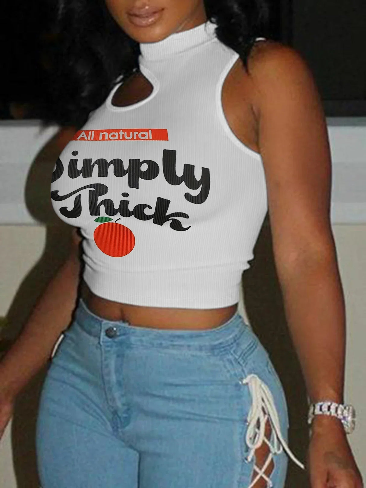 Fruit Letter Print Rib Knot Camisole Summer - WHITE / 4XL / VIP Price is backordered and will ship as soon as it is back in stock.
