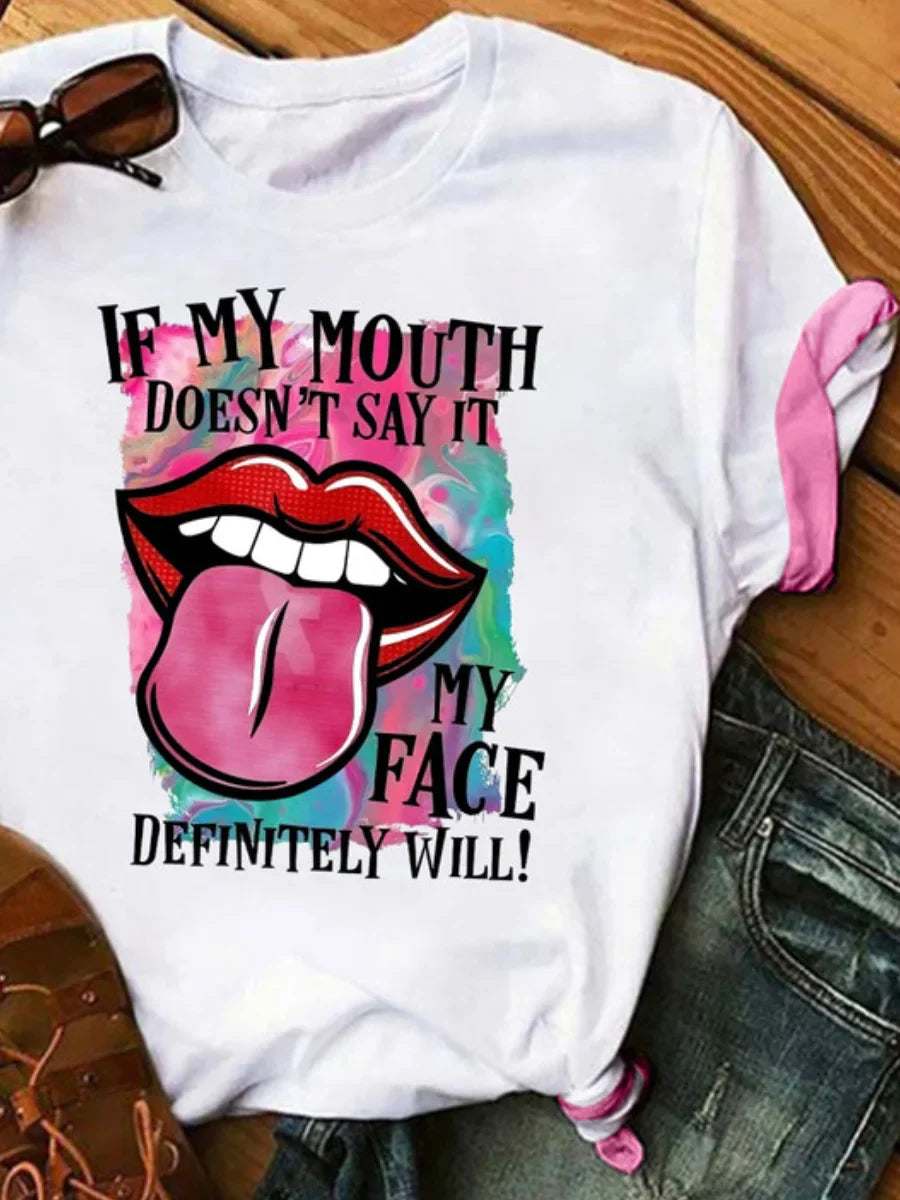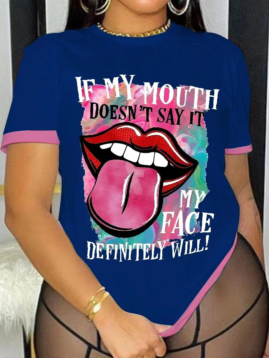 Lip Letter Print T-Shirt Summer Short Sleeve