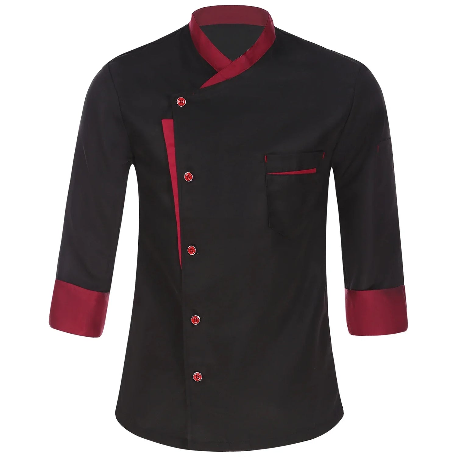 Men Chef Shirt Long Sleeve Cosplay Jacket Kitchen - Burgundy A / M / VIP Price is backordered and will ship as soon as it is back in stock.
