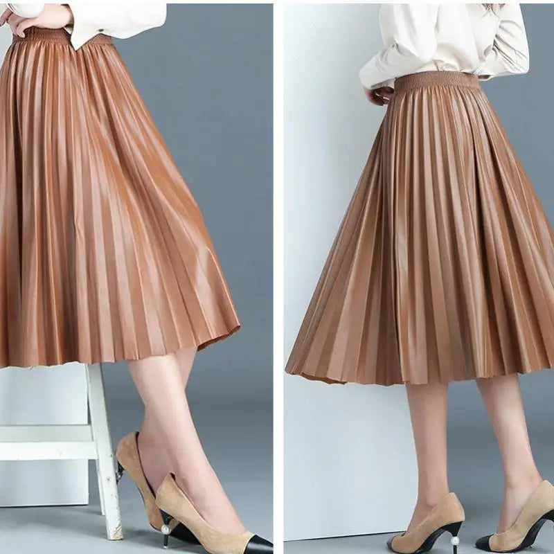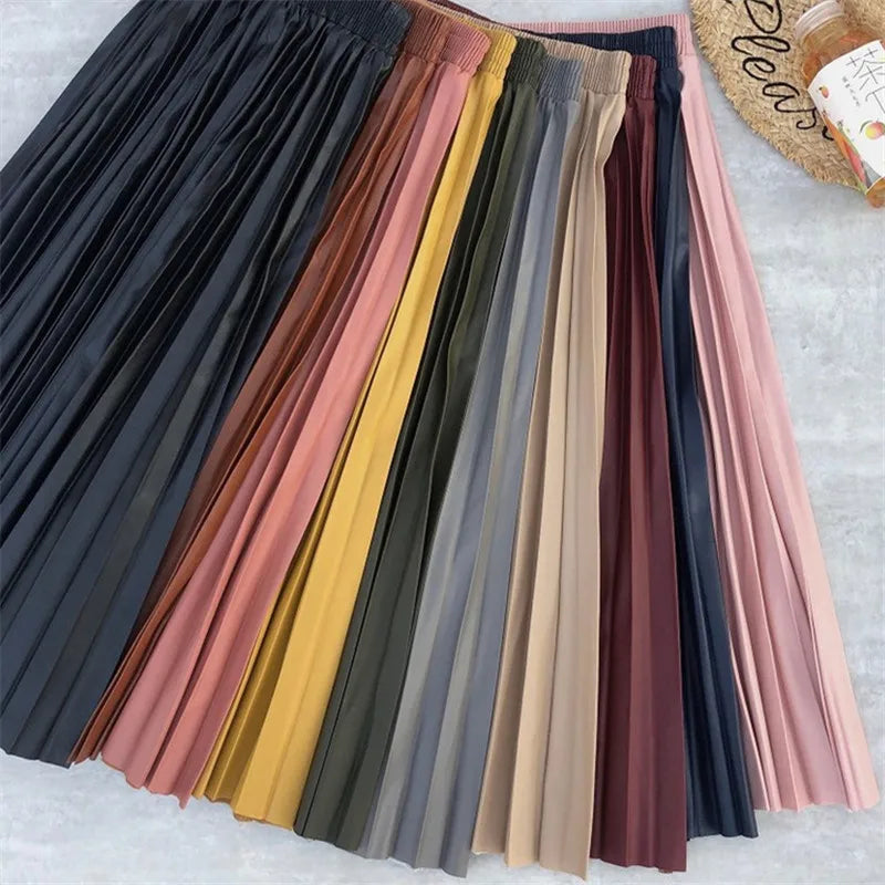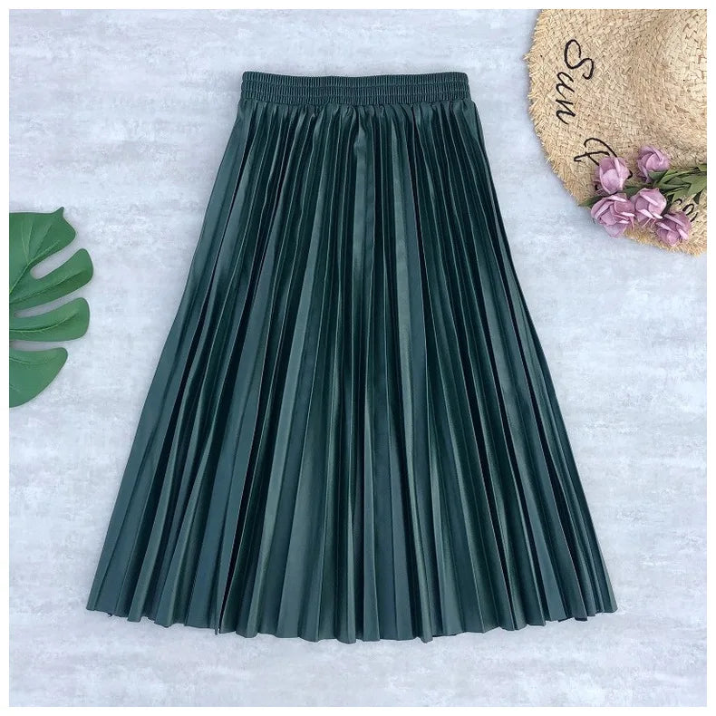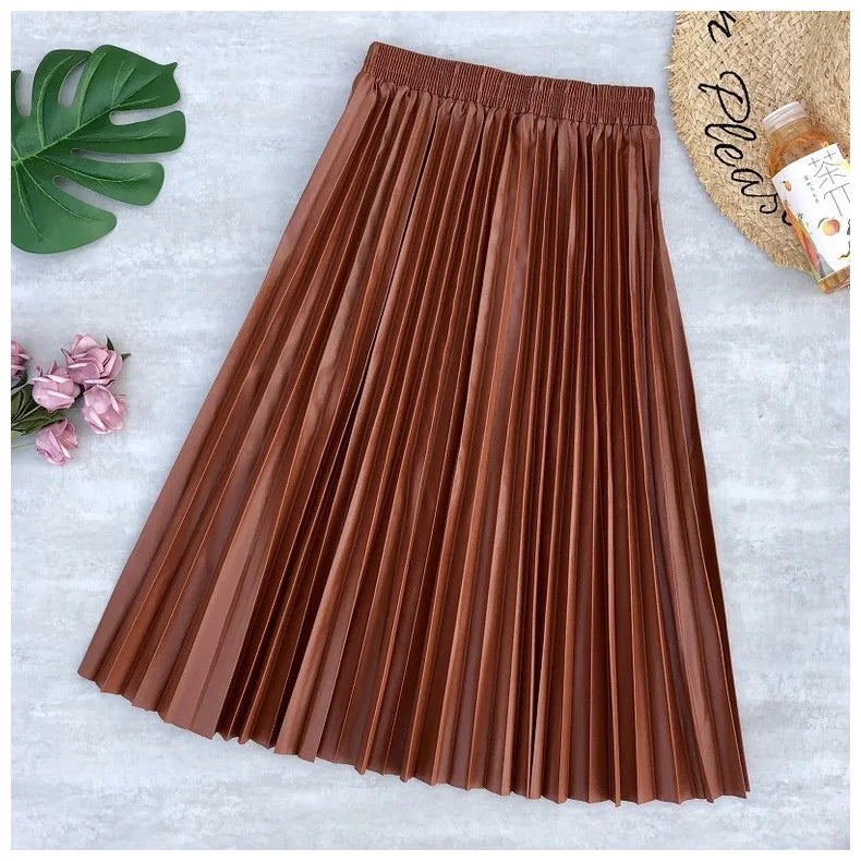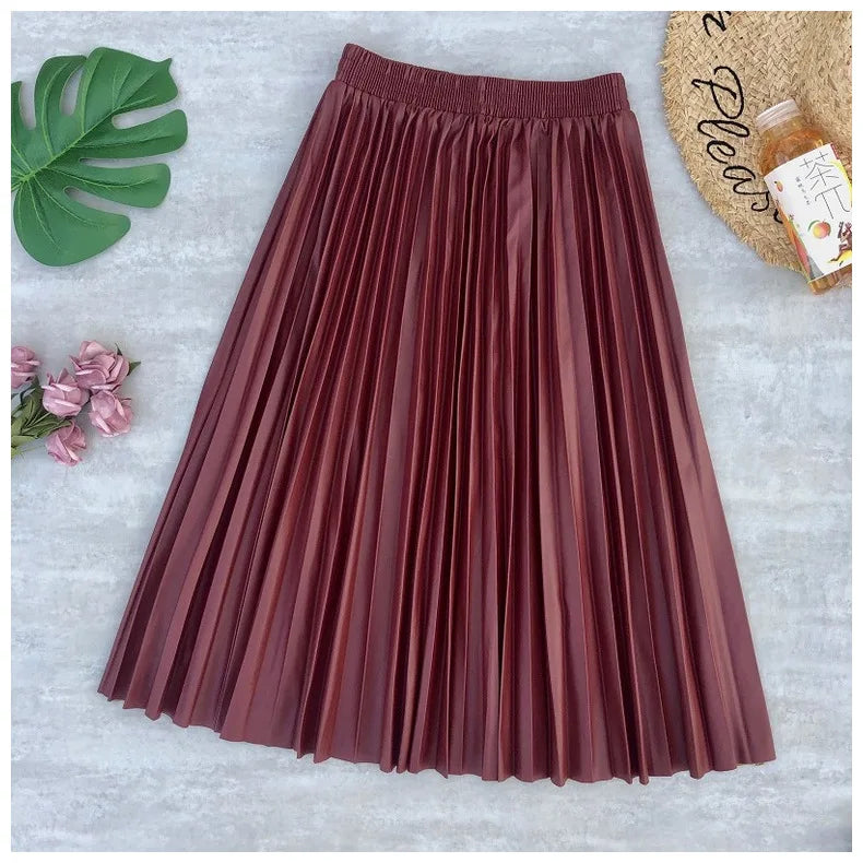 - Type:Pleated skirt /Faux Leather skirt / Pu skirt / Midi skirt / Long skirt