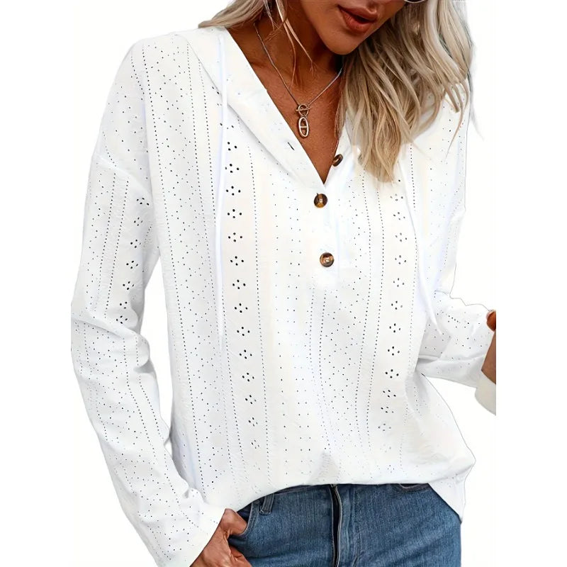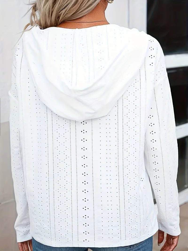 Casual Sweatshirt Women' Plus Solid Eyelet Embroidered