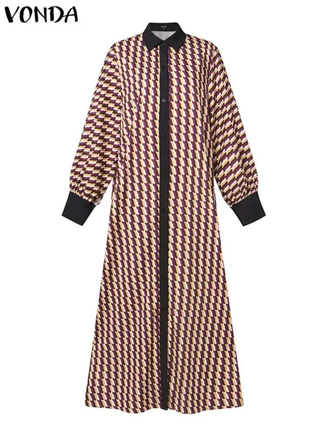5Xl Vonda Bohemian Women Maxi Dress Autumn Long