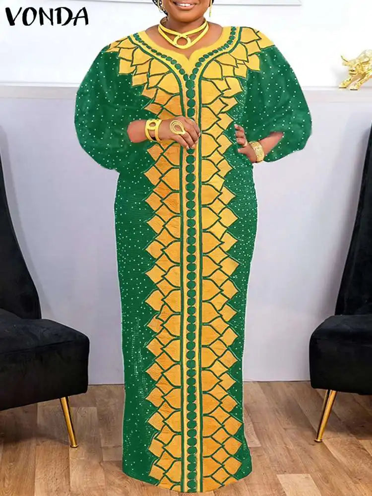 5Xl Vonda Bohemian Women Printed Maxi Dress V-Neck