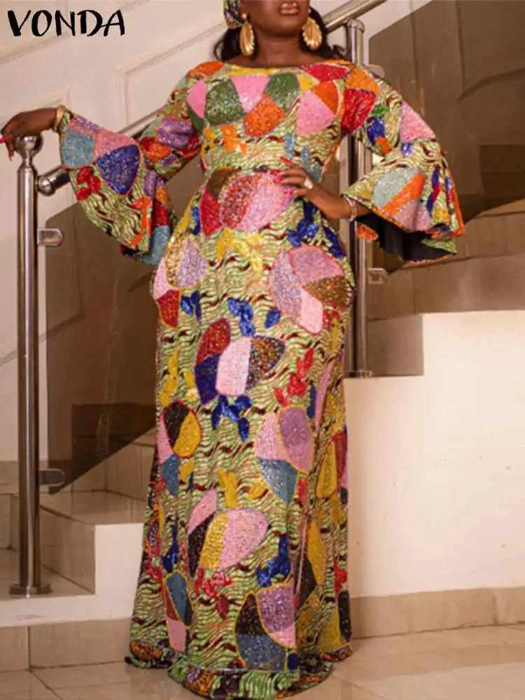 5Xl Vonda Elegant Women Maxi Dress Autumn Long - green / XL / VIP Price is backordered and will ship as soon as it is back in stock.