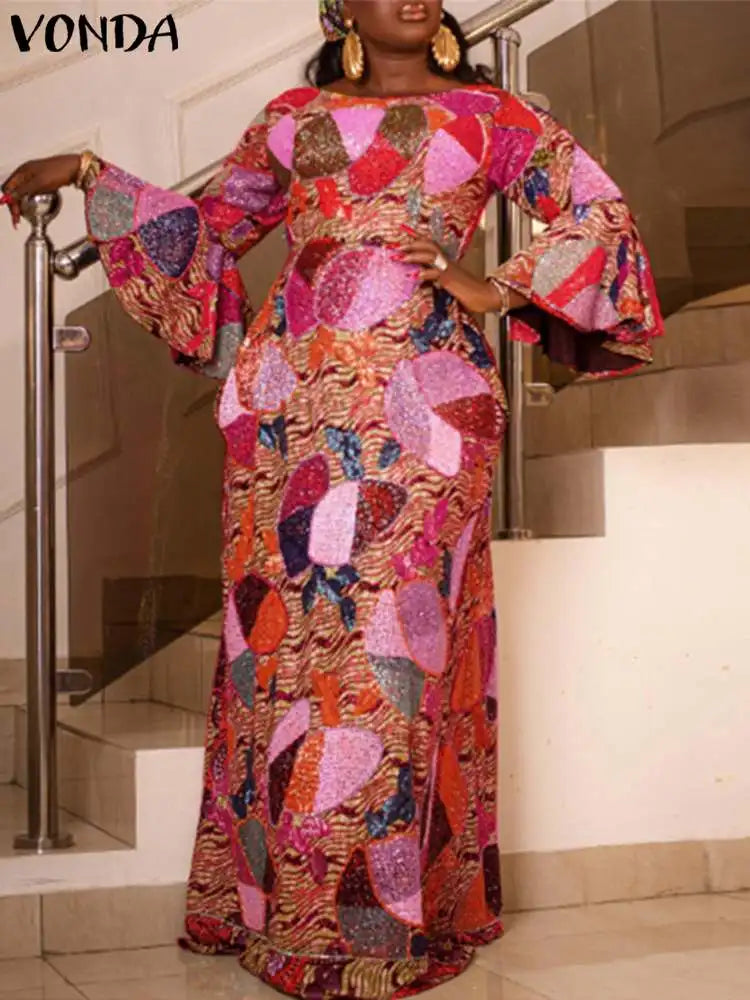 5Xl Vonda Elegant Women Maxi Dress Autumn Long