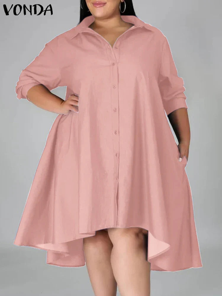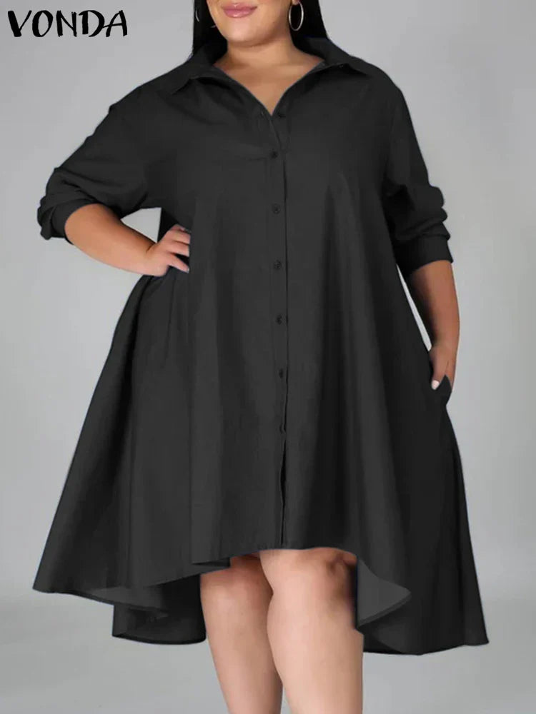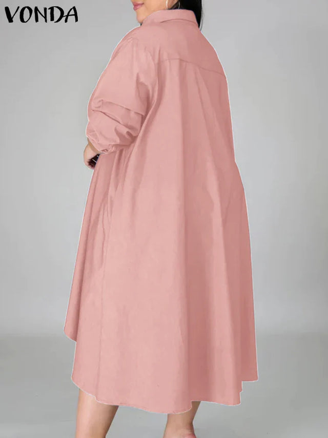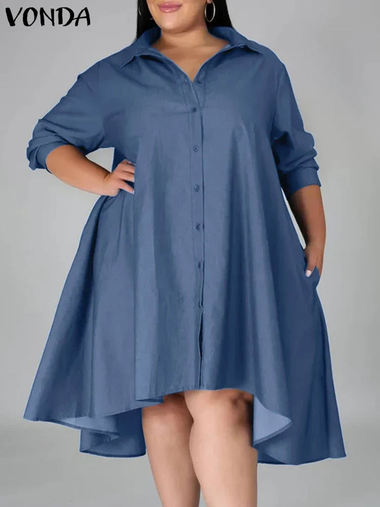 5Xl Vonda Women Vintage Shirt Dress Autumn Denim - Blue / 4XL / VIP Price is backordered and will ship as soon as it is back in stock.