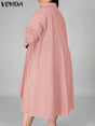 5Xl Vonda Women Vintage Shirt Dress Autumn Denim