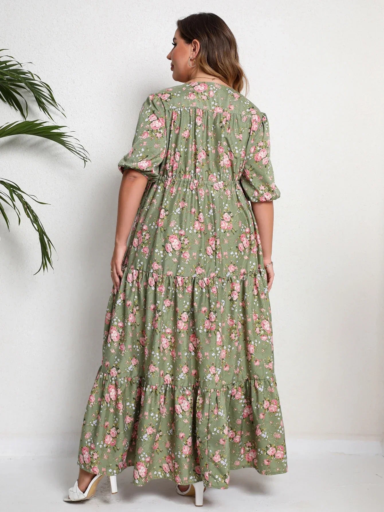 Floral Print Half Sleeve Split Hem Maxi V - Pink / 5XL / VIP Price is backordered and will ship as soon as it is back in stock.