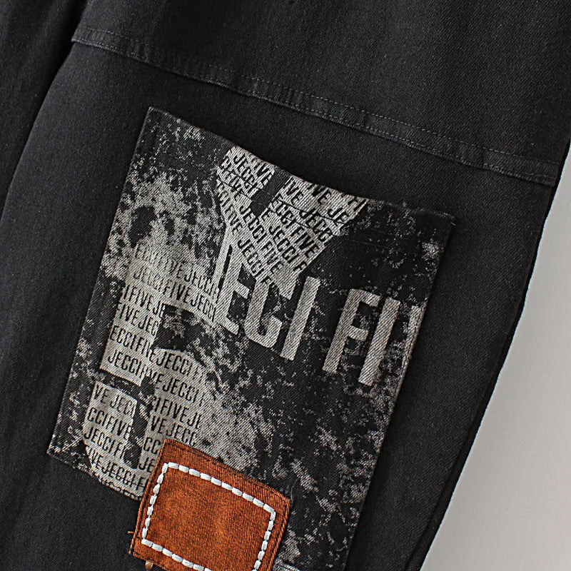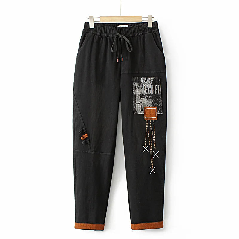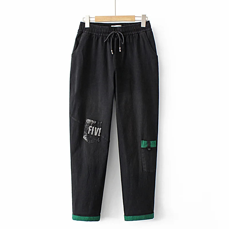 Jeans Women' Clothing Fall Letter Print Embroidered Pockets - 902 black / XXL / VIP Price is backordered and will ship as soon as it is back in stock.