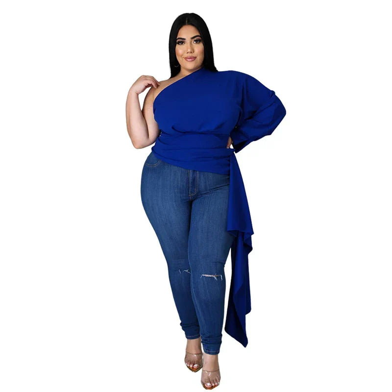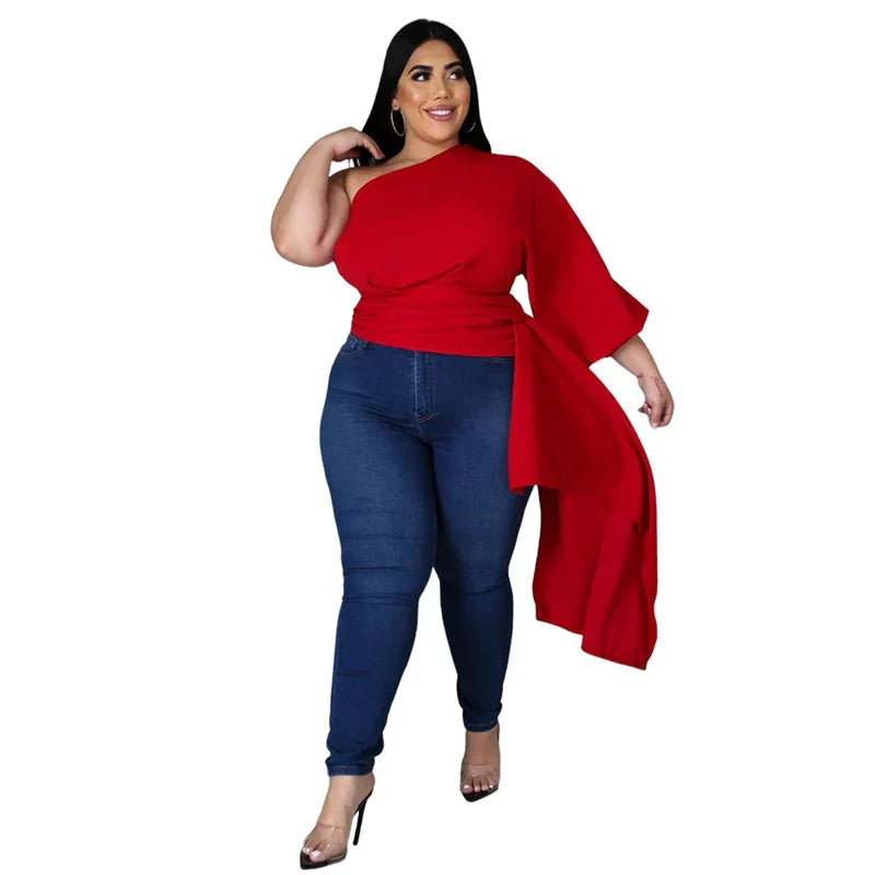 Tops Sexy Slash Neck One Shoulder Puff Sleeve - Red / XXXL / VIP Price is backordered and will ship as soon as it is back in stock.