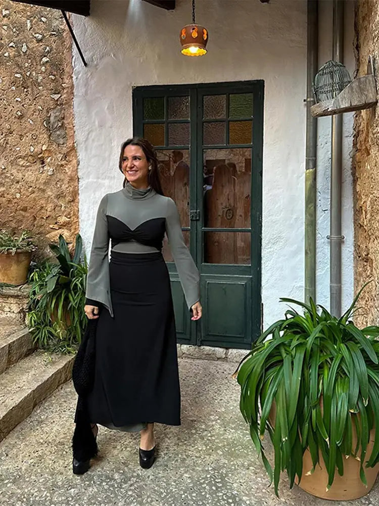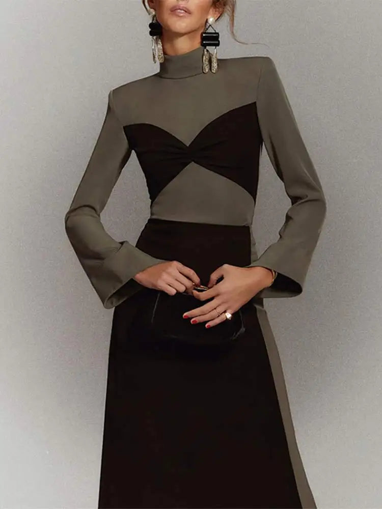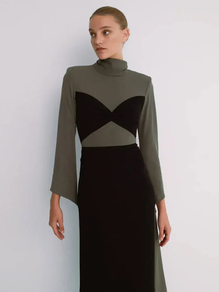 Sexy Patchwork Contrasting Colors Lace Up Dress Women