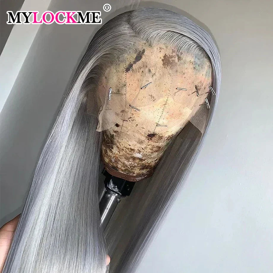 Silver Gray Lace Front Human Hair Wigs Transparent