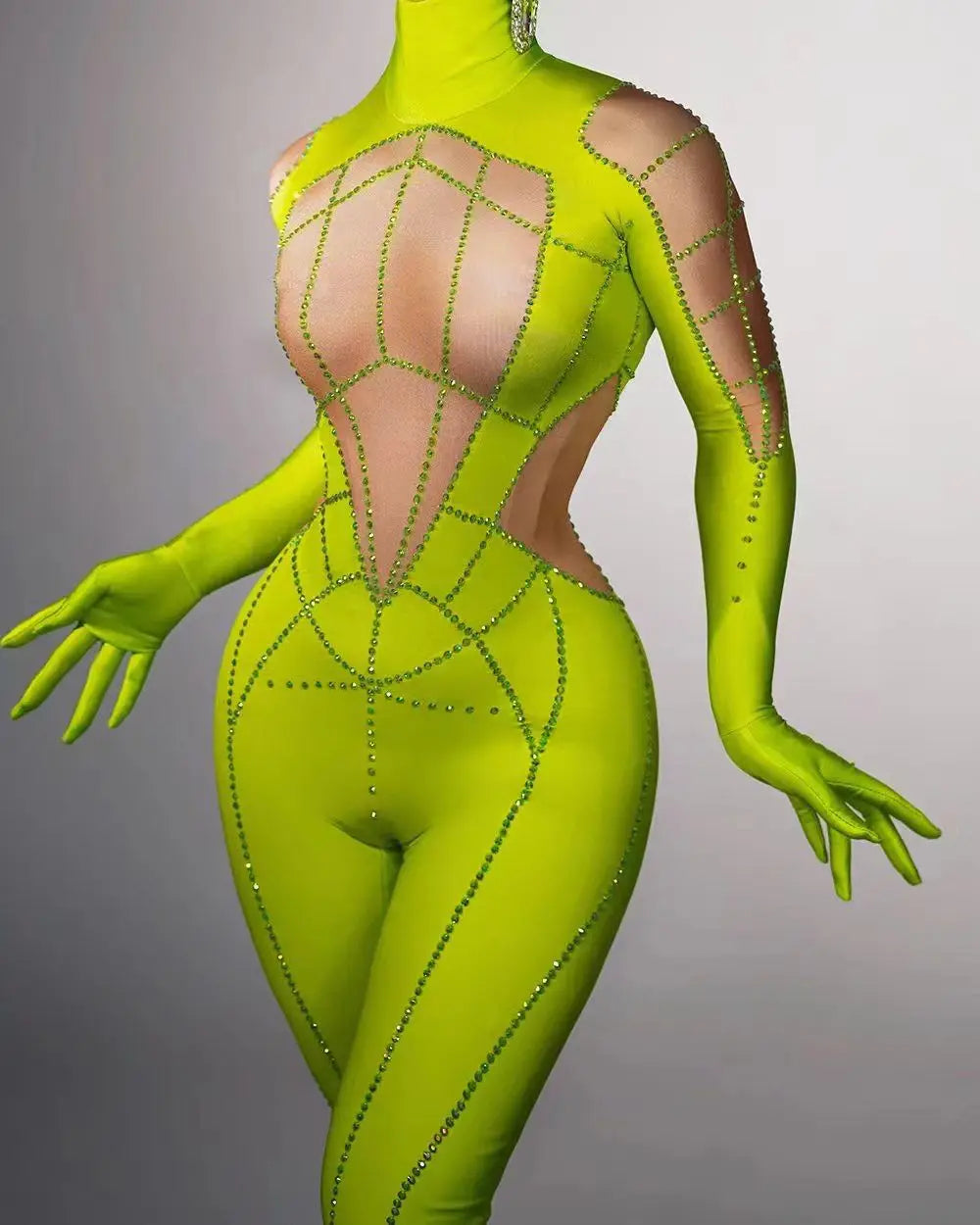 Singer Show Sequins Jumpsuit White Stretch Pole Dance