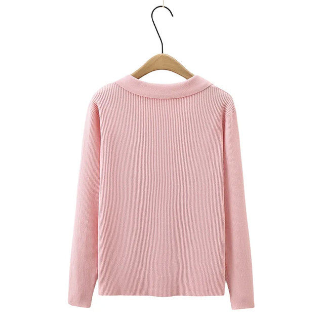 Slim V Neck Knit Sweater Women Autumn Winter - pink / L / VIP Price is backordered and will ship as soon as it is back in stock.