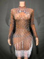 Sparkly Rhinestones Pearls White Fringe High Neck Mesh