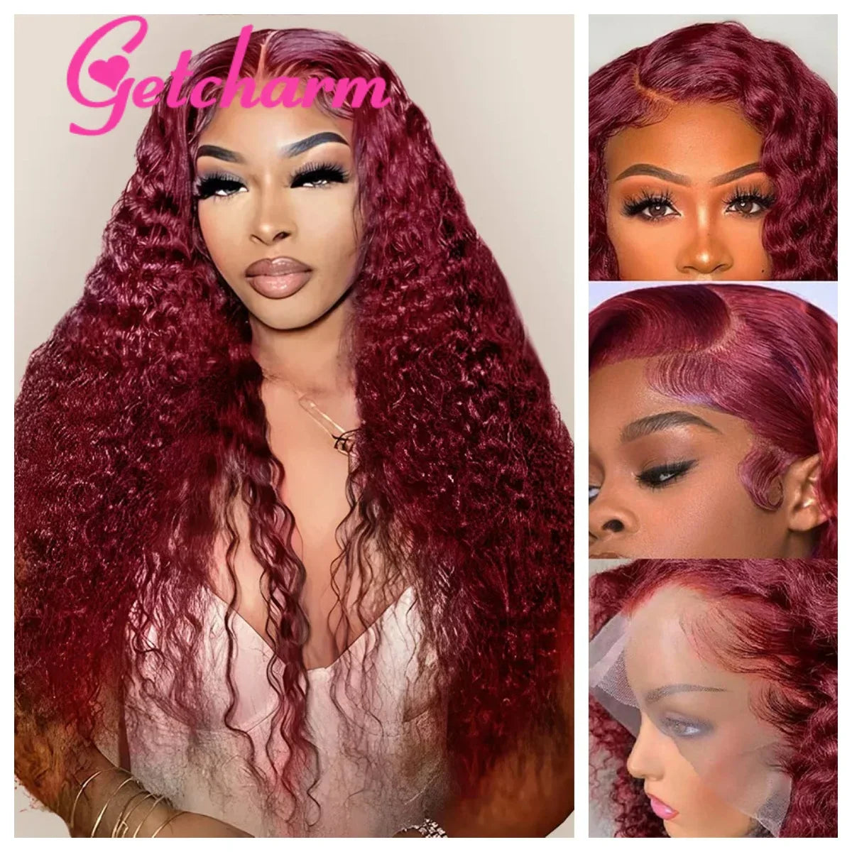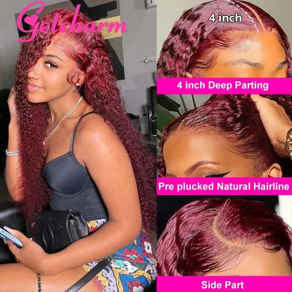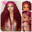 Weargo J Burgundy Curly Lace Wigs Human Hair
