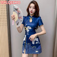 Women Chinese Style Retro Improved Temperament Printing Cheongsam - Blue / S / CHINA is backordered and will ship as soon as it is back in stock.