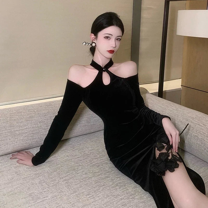 Women' Dress Off Shoulder Slim Sexy Split Cheongsam