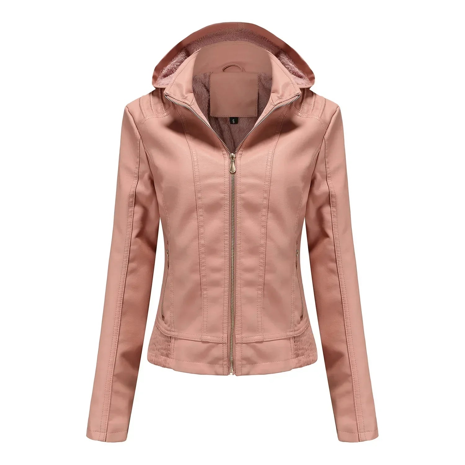 Women'S Moto Biker Zipper Jacket Hooded Faux Fur