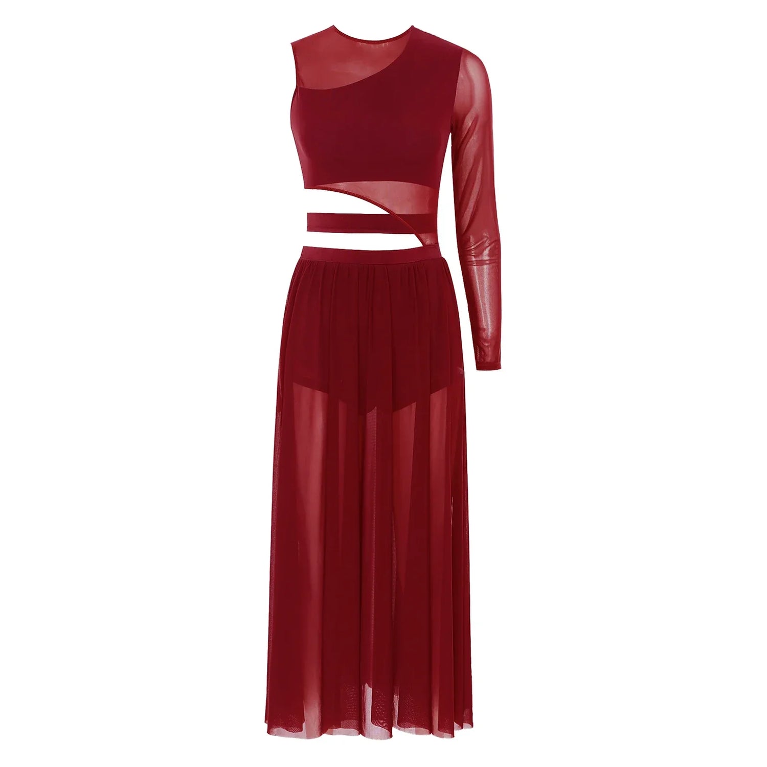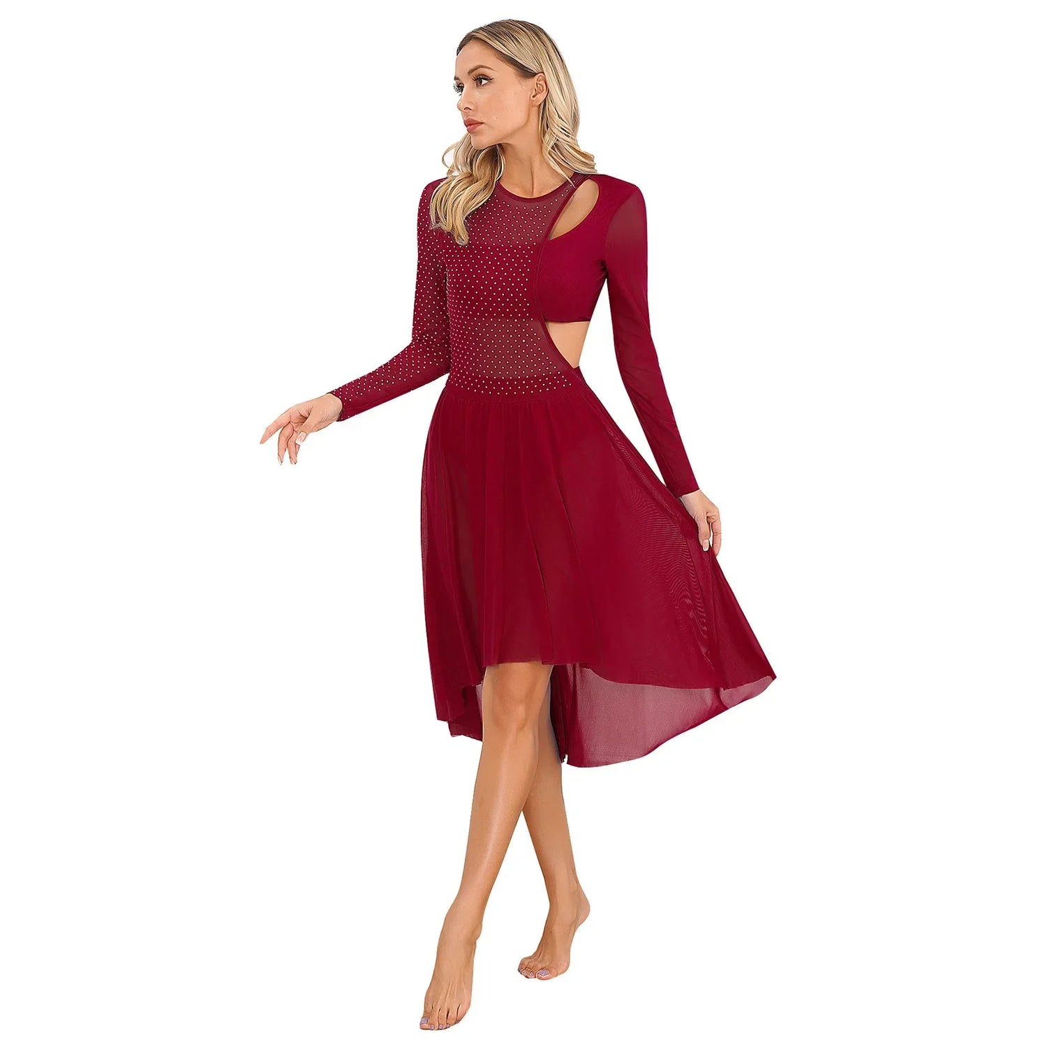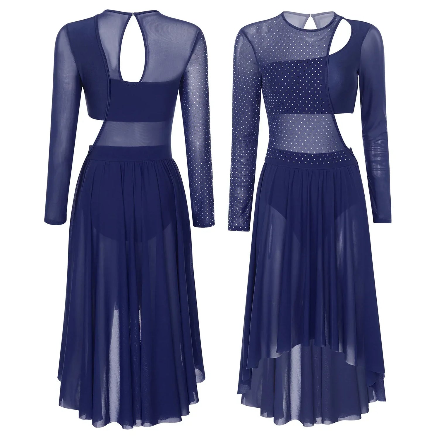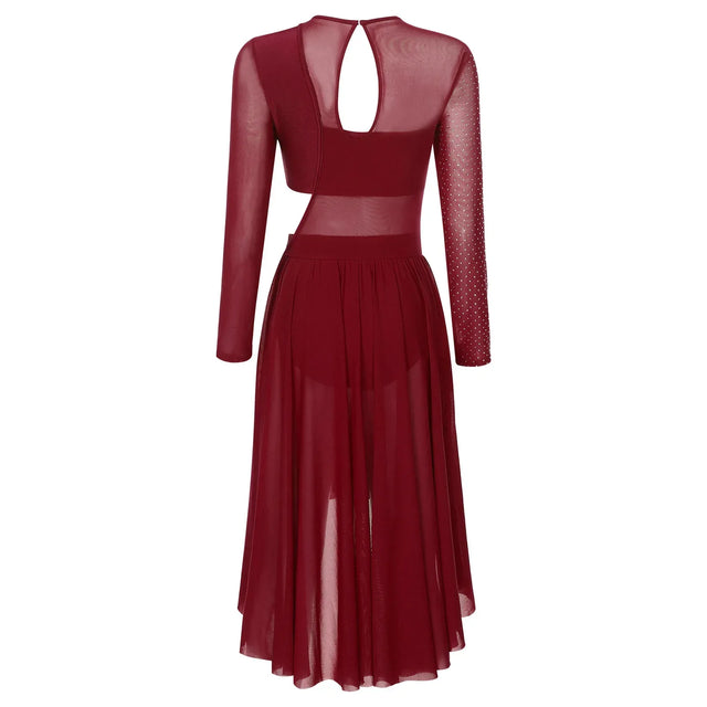 Womens Ballet Lyrical Dance Dress Shiny Rhinestone Sheer