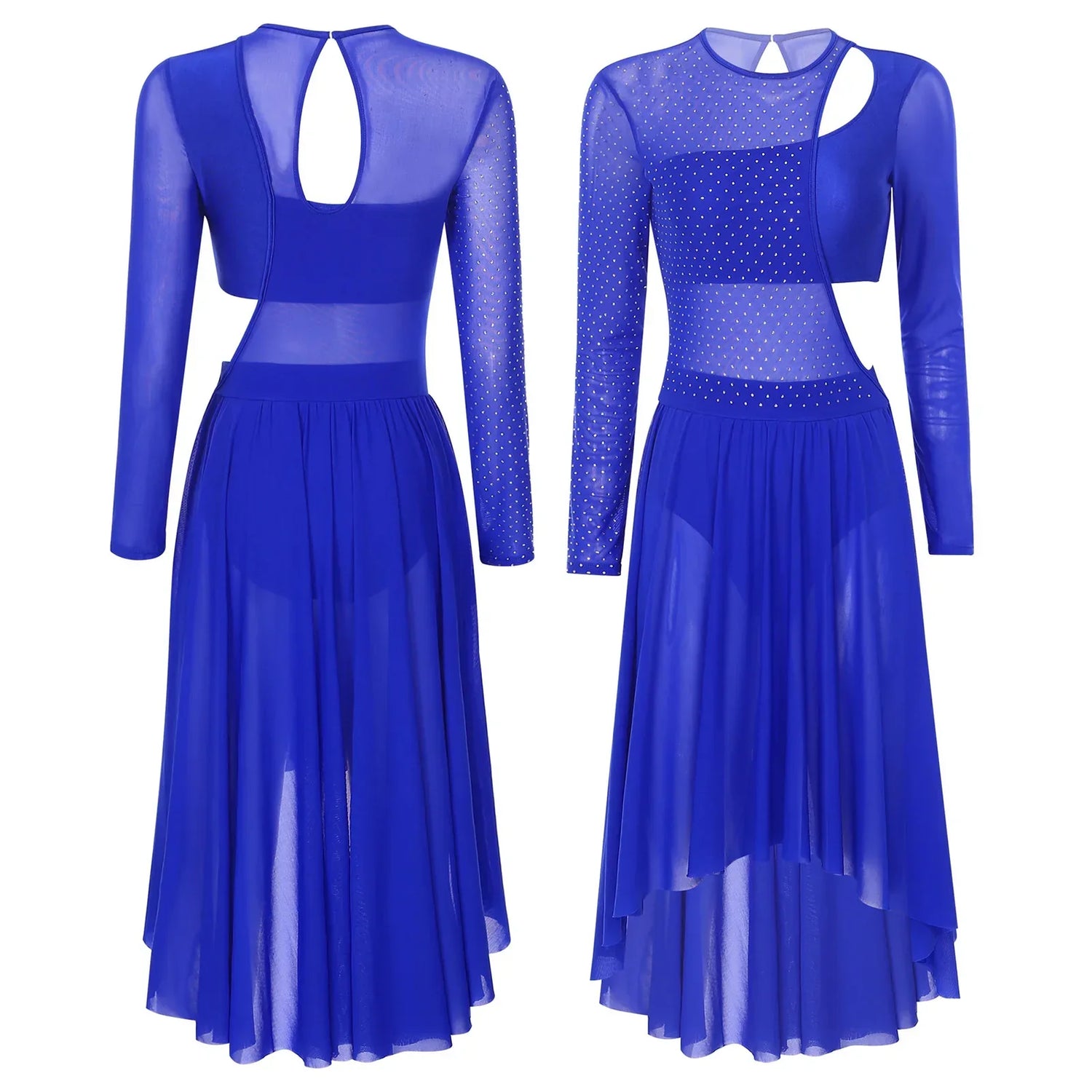 Womens Ballet Lyrical Dance Dress Shiny Rhinestone Sheer - Royal Blue A / S / VIP Price is backordered and will ship as soon as it is back in stock.