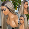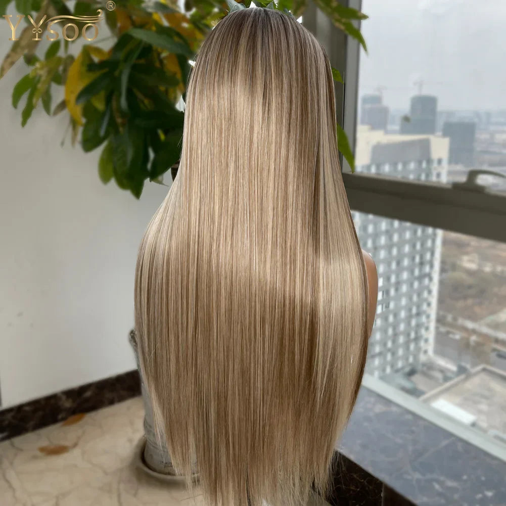 Yysoo Long Silky Straight Ombre Highlights Synthetic Wig